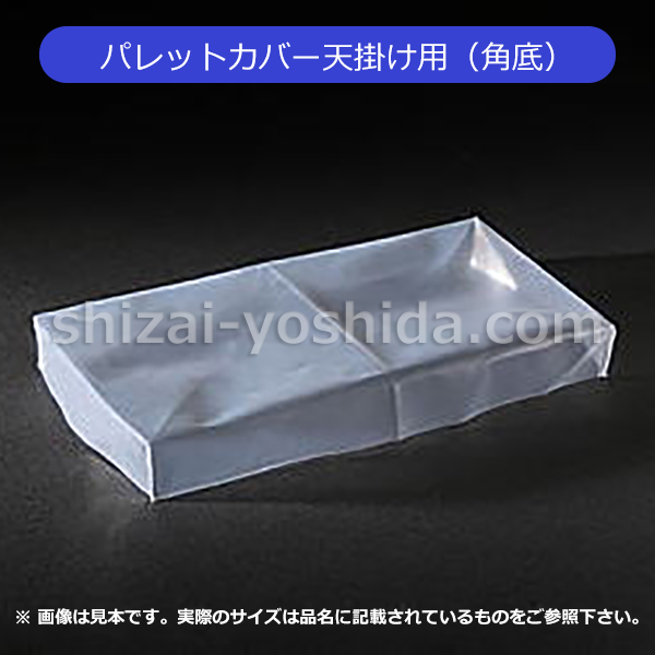 パレットの貨物の上にかける角底の天掛ポリカバーです。ほこりや、雨対策として幅広い用途で使用されています。パレットの荷の側面をストレッチフィルムで、上面を天掛カバーで覆うと便利です。各種サイズがそろっておりますのでパレットサイズに合わせて選択しご注文できます。100枚からお求め頂けますので無駄がありません。
