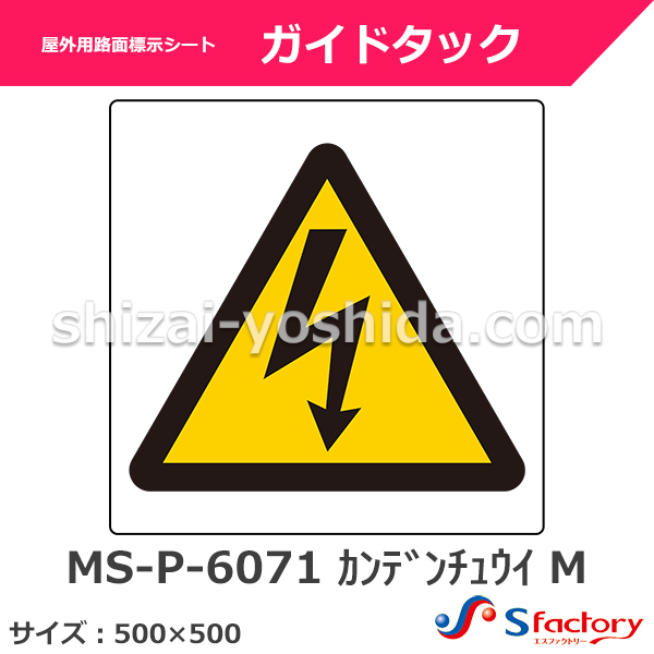 屋外用路面標示シート ガイドタック【MS-P-6071 カンデンチュウイ M】サイズ:500mm×500mm(感電注意 マークのみ)