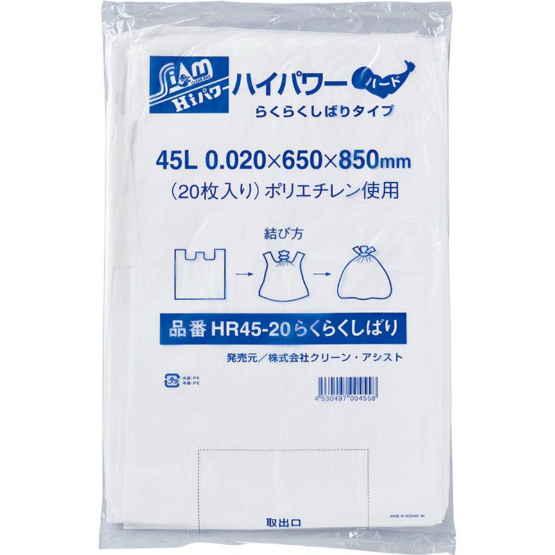 クリーンアシスト ハイパワーらくらくしばりタイプ ハード ゴミ袋(HR45-20)(45L)(半透明)厚み0.020mm 横×縦(650×850mm)20枚×30冊(600枚) JANコード: 4530497004558 販売価格: ¥5,350(税込) 在庫数 : 100 ポイント: 54pt (5倍キャンペーン中) 単位: 個 発送目安: 2~3日後 個