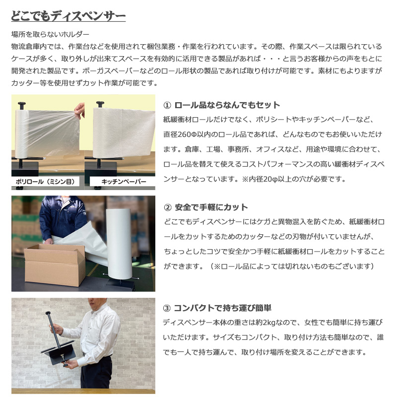 梱包作業用 どこでもディスペンサー(ボーガスペーパー用)